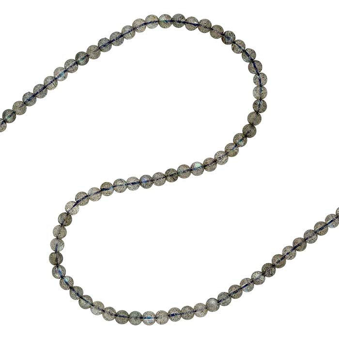 The round beads in this labradorite strand feature eye-catching light-blue/green flashes characteristic of labradorite—the beads are light brown/gray and the amount of labradorescence varies from bead to bead. String the beads on their own to create a necklace or separate the beads and combine them with other colors and styles of stone and metal beads or pearls to highlight the beads’ unique color flashes.Labradorite displays a unique reflection of light that is known as 'labradorescence.' This effect is due to geometric planes within the mineral structure at a submicroscopic level that are almost always oriented in one direction, but in such a way that they cannot be expressed by simple indices. Because of this, light reflecting from these planes produces an optical effect uniquely characteristic of this stone.Each package contains one temporarily strung 15"–16" strand.