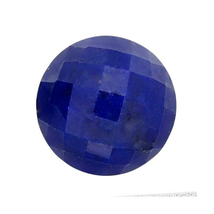 This high-dome round lapis lazuli cabochon features facets that reflect light from this high-quality gemstone. The high dome makes the gem much more substantial than traditional cabochons, increasing the profile of the gemstone in your design. It is a great choice for custom pendant designs—combine it with a variety of gems and other design elements to create mixed-stone matched sets including bracelets, earrings and rings. Complement the saturated blue color with yellow, white or rose metal settings.