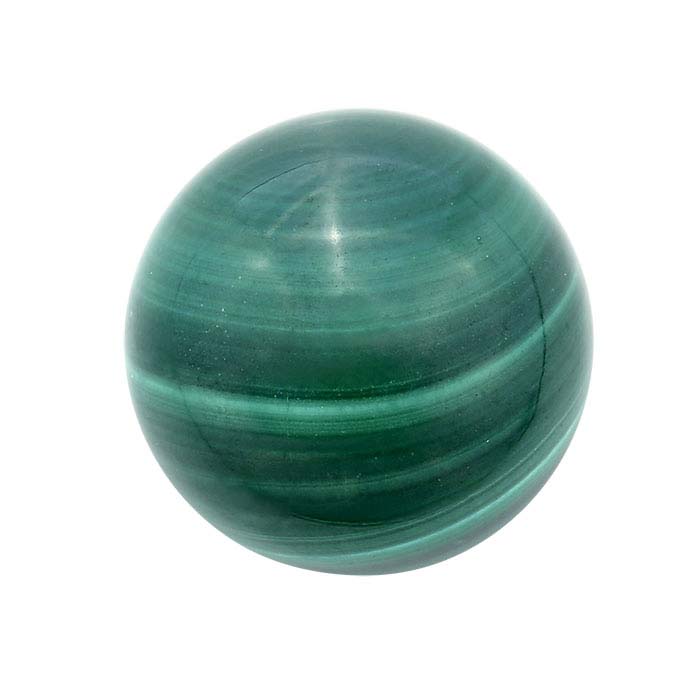The characteristic mixed-tone banding of this round malachite cabochon and the vibrant green color make it an ideal choice for a centerpiece of a pendant or brooch. Partner these designs with complementary-color cabs to create matched sets with bracelets or earrings, or use it to create more complex, multi-stone necklace designs.Malachite is a copper-rich mineral that displays a rich, green color and features a characteristic, and widely varying, pattern of banding that can be likened to woodgrain. Its name derives from its resemblance to the leaves of the mallow plant. Folklore holds that malachite represents the deep, healing and beauty of nature. In addition to its use in jewelry design, malachite is one of the oldest known green pigments and was used in creating green paints until about 1800. Each is unique; natural banding patterns will vary.
