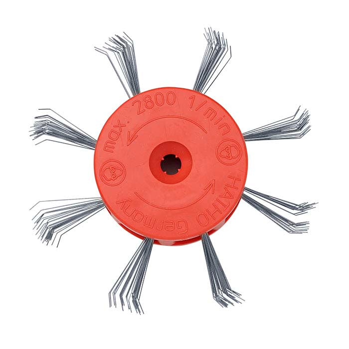 Create a beautiful textured finish—quickly and easily—with this 4"-diameter MaxiMat wire brush. The wire bristles (.014" diameter/.3mm) deliver a fine-textured finish. Mount the brush on a right-hand tapered spindle. This brush has 1-5/16"-long (approx.) steel bristles mounted in a 2" diameter plastic hub. Replace bristles as needed to keep the wheel performing effectively.