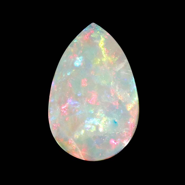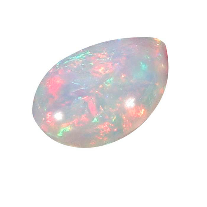 This AAA-grade natural pear-shaped opal cabochon is an appealing option for custom jewelry and one-of-a-kind pieces. To highlight the opal's signature flashing colors, we recommend that you set the gemstone over a black or dark-colored layer, or that you heavily oxidize your metal. AAA-grade quality ensures excellent play of color.Opal is a relatively soft mineral that comprises silicon and water and is characterized by and valued for its display of flashing rainbow colors, referred to as the "play-of-color." There are many different varieties, with gemstone colors ranging from white or light gray to brown or red to black. While opal may be found in either sedimentary deposits or in volcanic deposits; the volcanic gemstones tend to be brittle and more fragile than the sedimentary gems.