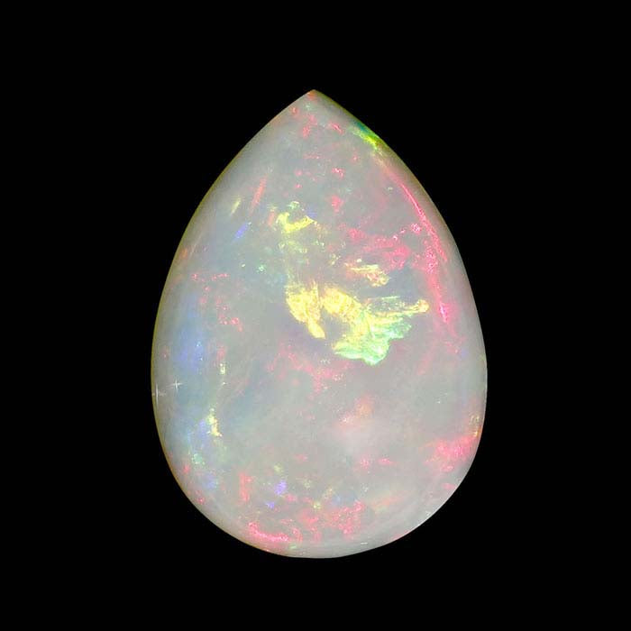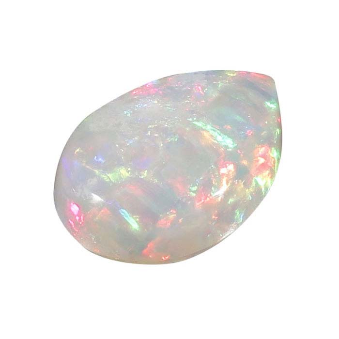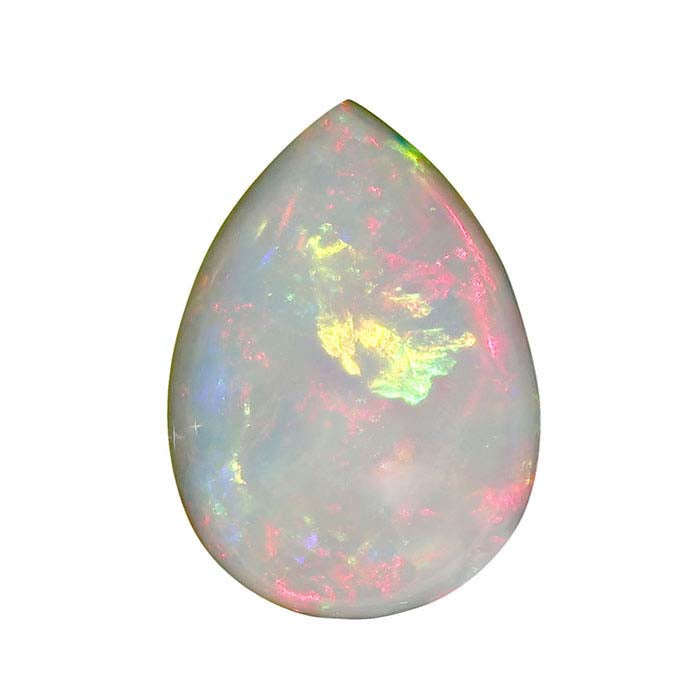 This AAA-grade natural pear-shaped opal cabochon is an appealing option for custom jewelry and one-of-a-kind pieces. To highlight the opal's signature flashing colors, we recommend that you set the gemstone over a black or dark-colored layer, or that you heavily oxidize your metal. AAA-grade quality ensures excellent play of color.Opal is a relatively soft mineral that comprises silicon and water and is characterized by and valued for its display of flashing rainbow colors, referred to as the "play-of-color." There are many different varieties, with gemstone colors ranging from white or light gray to brown or red to black. While opal may be found in either sedimentary deposits or in volcanic deposits; the volcanic gemstones tend to be brittle and more fragile than the sedimentary gems.