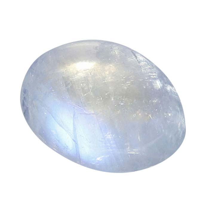 Rainbow moonstone is a variety of labradorite, a member of the feldspar group and features an iridescent sheen called “labradorescence.” This means that the gemstone displays colors that change depending on the angle and source of the light striking the gemstone surface. In rainbow moonstone, this characteristic is due to light reflecting from twinning planes within the gem. Ancient Romans believed moonstone to be rays of moonlight transformed into a solid form.