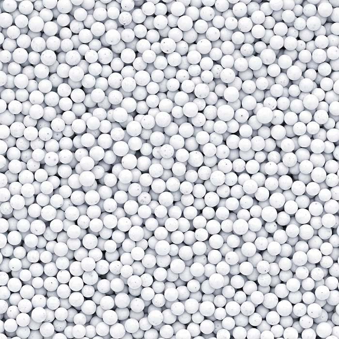 Raytech Microbrite porcelain media gives workpieces a bright finish with less distortion and fewer marks. Porcelain media produces very little wear on surfaces and can be used on delicate parts. You can achieve a bright finish with porcelain ball media; its round shape creates a single contact point, which results in a very fine finish to the areas it touches. While steel media can produce impingement marks on flat surfaces and on some softer metals, porcelain ball media will not leave those marks. Because of its lighter weight, this media is ideal to use for precious metal burnishing, delicate parts, and fine edge blanking. With a lower probability of distortion, porcelain ball media is a great finishing choice for wire forms and other lighter work. Porcelain ball media should be used with a burnishing compound.