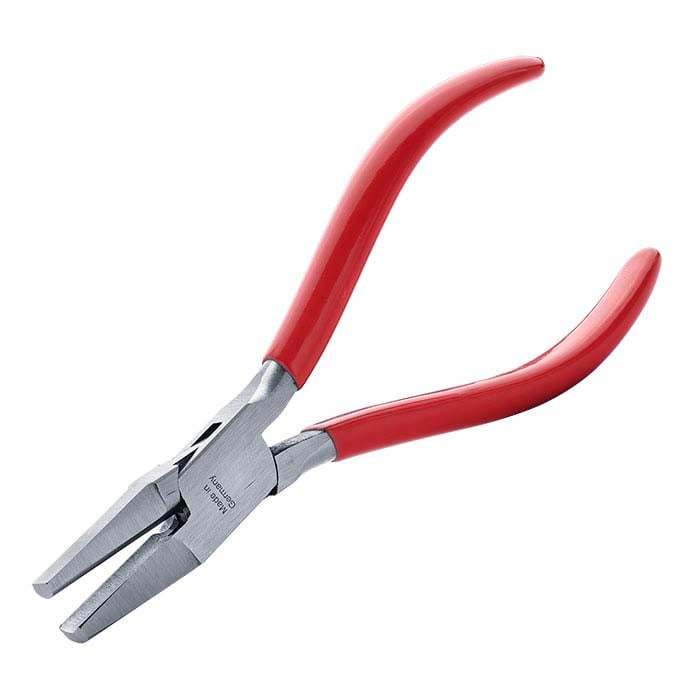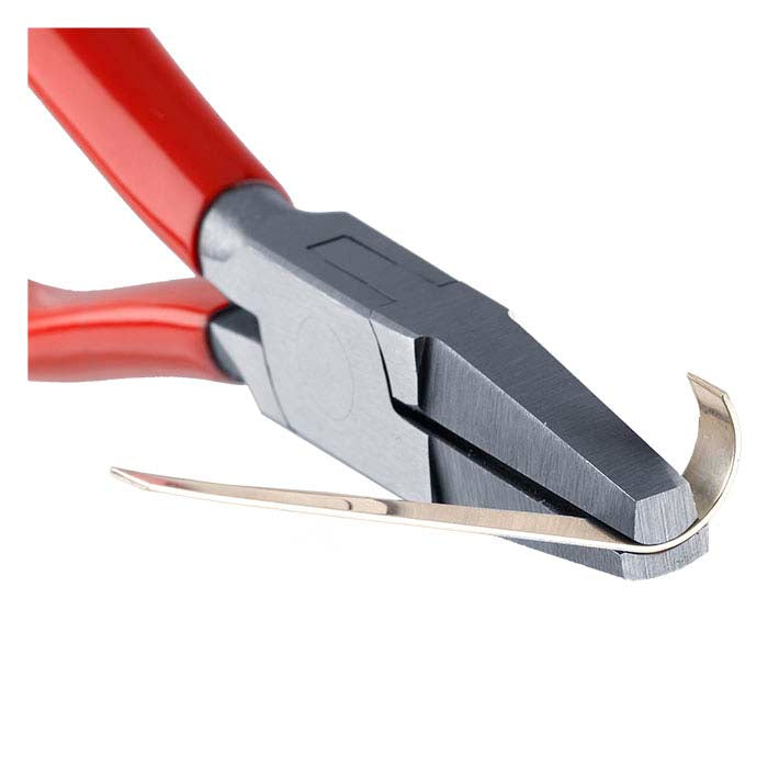 These ring-shank shaping pliers feature one gently concave and one gently convex jaw; the jaws nest together long their length to securely grip wire and metal strips when bending them to form ring shanks. Forming pliers have a variety of jaw configurations designed to maximize the ability to bend, shape or form wire, strip and sheet; this tool is best used with lighter-gauge wire (9 gauge and under). The hardened tool steel is very hard, strong and durable material; the jaws will not be nicked or misshapen with normal. Clean with Cosmoline® or a similar protectant; avoid contact with moisture.