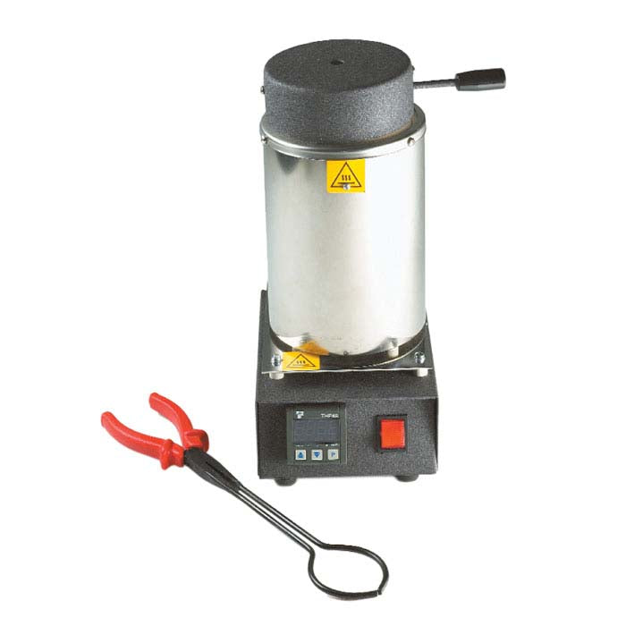 Efficiently melt non-ferrous alloys for casting and ingot-pouring. Simply lift out the crucible with the supplied tongs and easily pour the molten metal—no need to lift a heavy melting unit! Imported for Rio Grande.