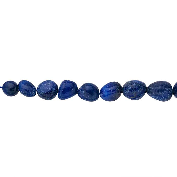 The irregularly shaped tumbled sapphire-blue chalcedony nugget beads on this strand feature a range of medium-to-dark blue colors—each bead has a subtle, unique banding pattern, giving the strand a one-of-a-kind look. The beads vary in size from 17 x 13mm to 20 x 15mm. The nuggets look great when strung on their own in a necklace or bracelet, used individually as accent beads or when combined with complementary-color beads in necklace, earring, and bracelet designs.
