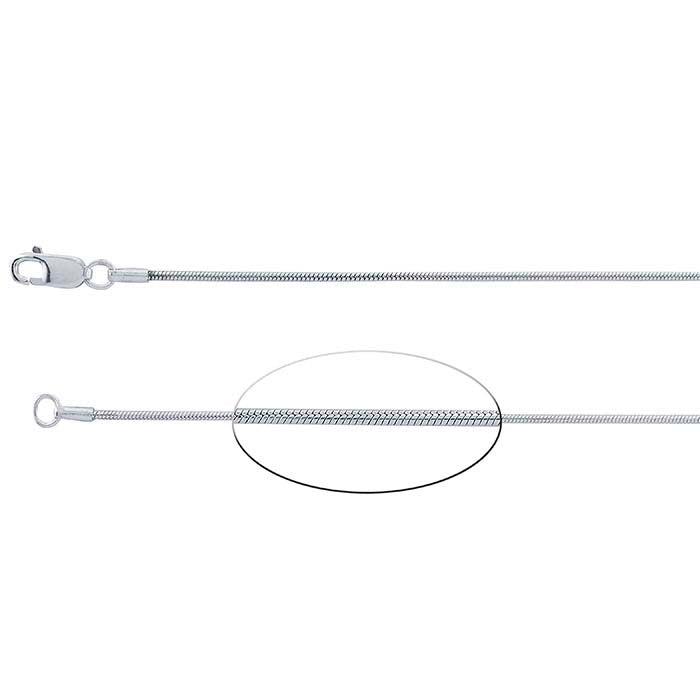 This petite round sterling silver seamed snake chain necklace is a great option for designs that benefit from a strong, slender chain. Offer it as-is, or add delicate pendants, charms or drops for a personalized look. This chain is plated with fine silver to ensure a bright white color and to help protect against tarnish.