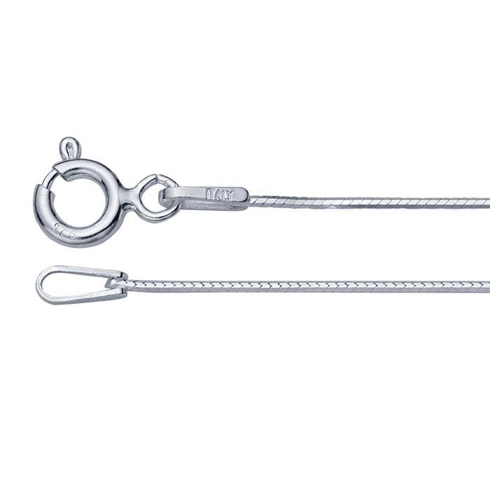 This seamed eight-sided sterling silver snake chain is a slender, elegant foundation in bright white metal. Pair it with small pendants and drops in any design style. This chain is plated with fine silver to ensure a bright white color and to help protect against tarnish.