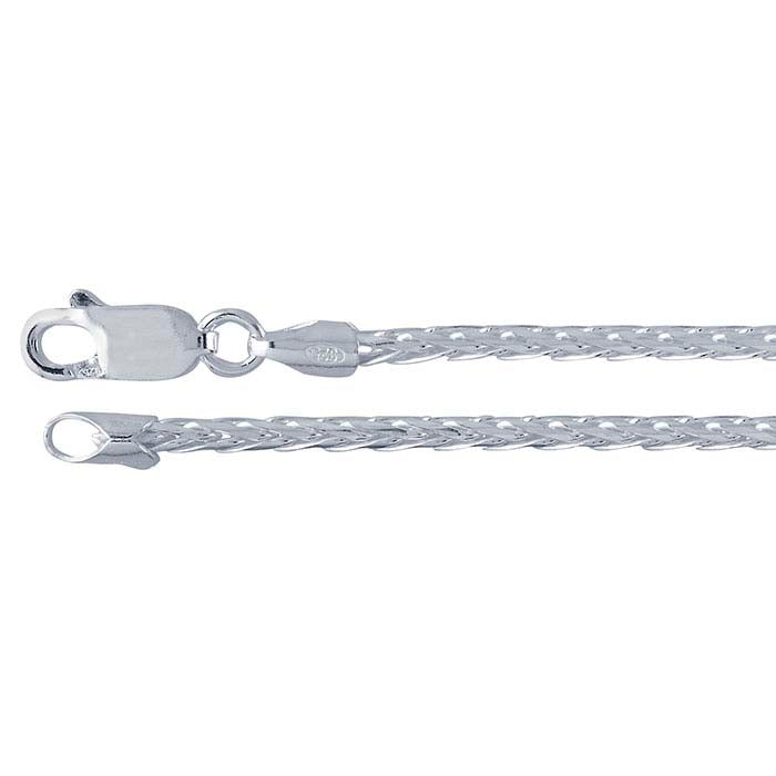 Add texture and depth to custom designs with this intricately woven sterling silver round wheat chain. Offering a classic profile, this chain looks great when worn alone, or it can be dressed up with add-ons such as pendants, charms, drops or dangles. This chain is plated with fine silver to ensure a bright-white color and to help protect against tarnish.