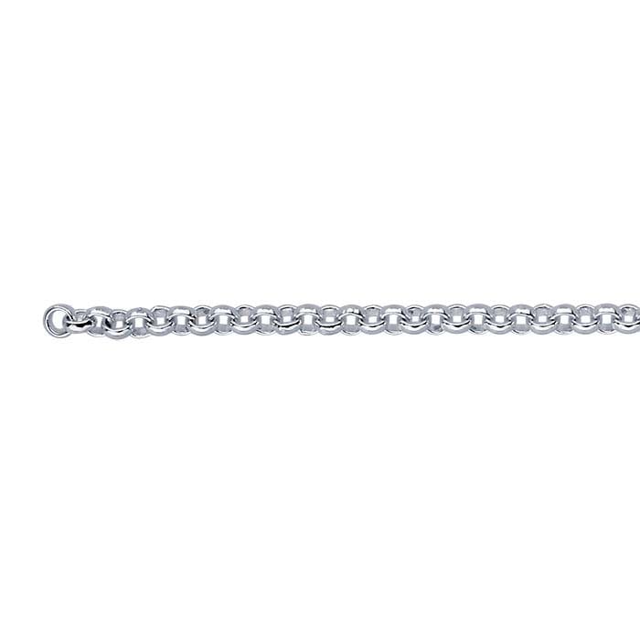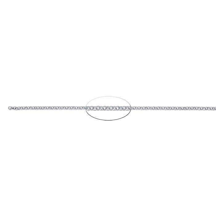 The links that make up rolo chain are created from flat or semi-round wire so that each link is wider than the wire thickness. The shape of the links may be round or oval—this chain has round links.