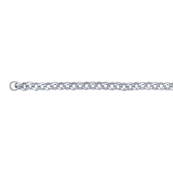 The links that make up rolo chain are created from flat or semi-round wire so that each link is wider than the wire thickness. The shape of the links may be round or oval—this chain has round links.