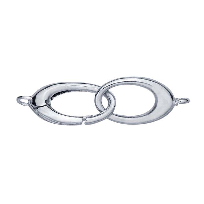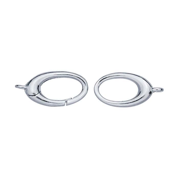 This sterling silver push clasp features a sleek oval shape and a spring-loaded hinge opening, making it a great choice for securing bracelet and necklace designs. Hook & eye clasps are two part clasps that close by hooking one side (the hook) to a large closed ring (the eye). They tend to be larger than other clasp types and are ideal for larger designs, bead strands or bib-style necklaces.