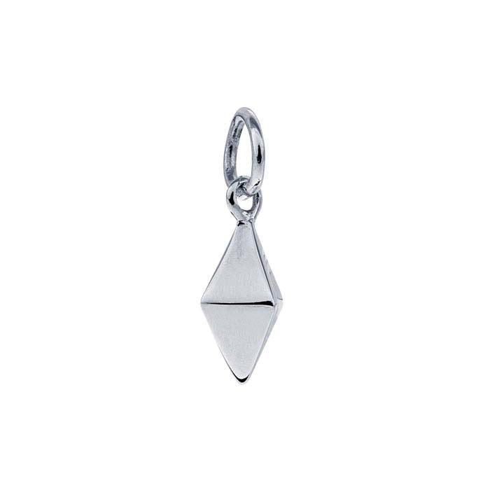 This sterling silver spike charm features a four-sided double pyramid design, brightly finished on all sides. The charm makes a great addition to a bracelet and is an ideal drop for an earring. This charm includes a jump ring, making it easy to add to chain or cord.
