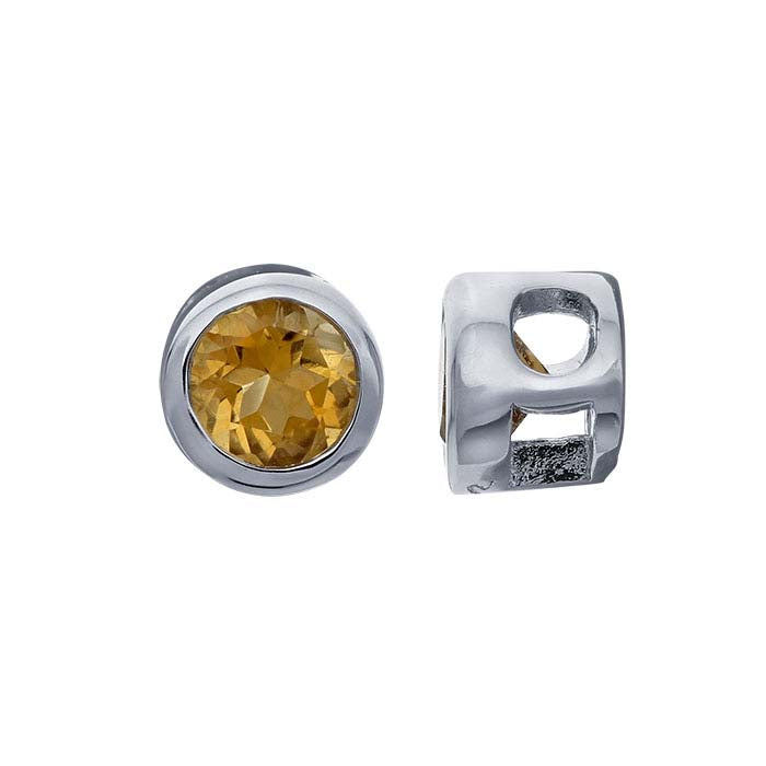 This sterling silver charm is bezel-set with a round faceted 3mm citrine, the birthstone for November. Use it as-is for an earring drop or combine it with a variety of other charms, drops or dangles in a necklace, bracelet or anklet.