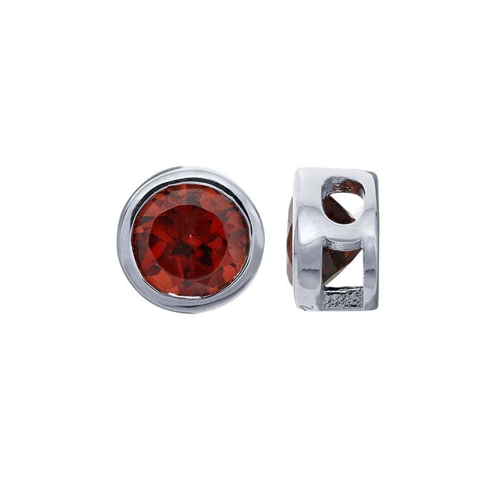 This sterling silver charm is bezel-set with a round faceted 4mm garnet, the birthstone for January. Use it as-is for an earring drop or combine it with a variety of other charms, drops or dangles in a necklace, bracelet or anklet.