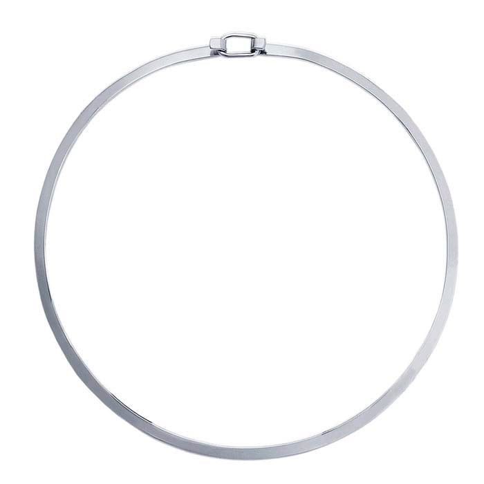 This simple sterling silver neck wire is made with rectangular wire and features an easy-to-use hook-and-eye clasp. Offer it as-is, or use it as a foundation for a custom silver or mixed-metal pendant.