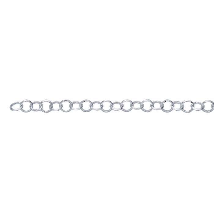 This sterling silver round rolo chain is made from triangle wire and complements a variety small drops or dangles. Offer it as-is, or provide an assortment of pendants, drops and dangles for your customer to choose from to create a one-of-a-kind piece. This chain is plated with fine silver to ensure a bright white color and to help protect against tarnish.The links that make up rolo chain are created from flat or semi-round wire so that each link is wider than the wire thickness. The shape of the links may be round or oval—this chain has round links.This chain is sold by the foot, allowing you to have exactly the length you need when you need it.