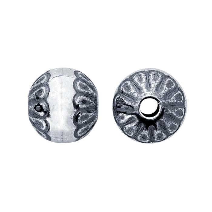 This sterling silver bead offers a contrast of bright and matte-finished areas including a bright center strip. It is especially effective in multiples or alternated with smaller beads. Round beads are a staple of strung designs; they are ideal simply strung together, used individually as separators or accents, or to complement other elements in drop or dangle earrings, bracelets or necklaces.