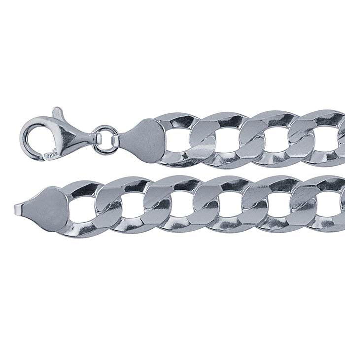 This sterling silver curb chain features beveled links that catch the light and lie flat, giving the chain added brilliance and interest. It's ideal for designs that call for an industrial, streamlined look—offer it as-is, or add pendants, drops or dangles for a more complex design. This chain is plated with fine silver to ensure a bright-white color and to help protect against tarnish.