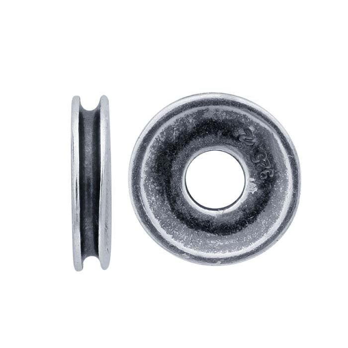 This sterling silver spacer bead features a grooved center that creates eye-catching variation when used in multiples. The design of this bead complements a variety of bead elements and can be added to earrings, necklace, bracelet or any strung designs.