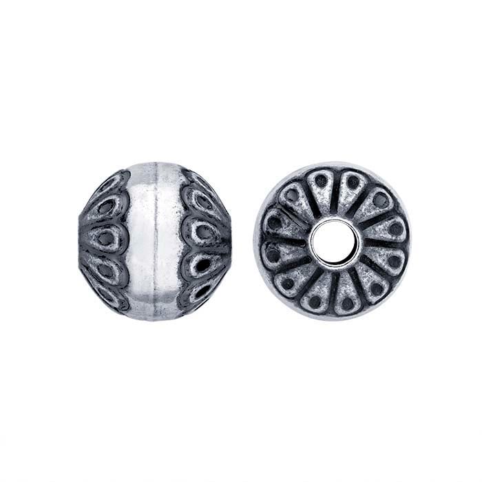 This sterling silver bead offers a contrast of bright and matte-finished areas including a bright center strip. It is especially effective in multiples or alternated with smaller beads. Round beads are a staple of strung designs; they are ideal simply strung together, used individually as separators or accents, or to complement other elements in drop or dangle earrings, bracelets or necklaces.