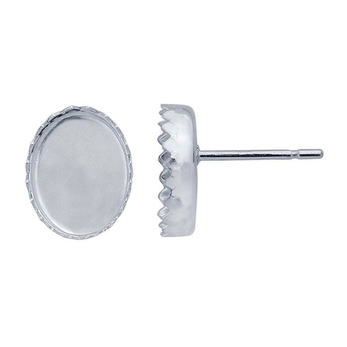 Sterling Silver 9 x 7mm Oval Serrated Cabochon Post Earring Mounting