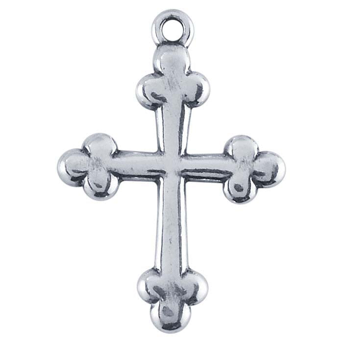 This sterling silver pendant features a botonnée cross—a cluster of three balls or knobs at the end of each arm. To complete the pendant, attach a bail, and use it as a pendant on a cord or chain, or combine it with other components in a more complex necklace or bracelet design.