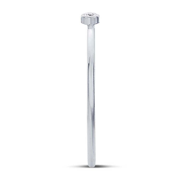 This sterling silver ring features one 2mm round CZ in a bezel setting. It’s attractive as a stand-alone accessory or stacked in combination with other rings. Offer customers a variety of stackable ring styles to mix and match, and encourage them to create their own changeable designs.