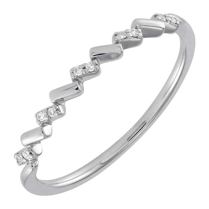 With a unique diagonal bar design, this sterling silver is a striking addition to a variety of looks. It is set with several round white diamonds (I3 clarity/H–I color; 0.033CTTW). The ring looks great as a stand-alone accessory or stacked in combination with other rings. It has a ".925" sterling silver stamp as a symbol of guaranteed product quality.