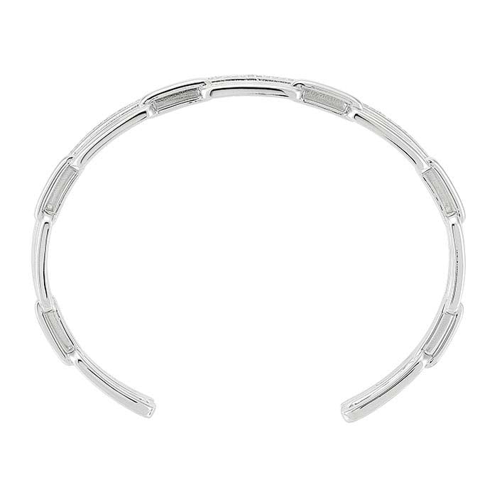 This sterling silver cuff bracelet features double-layer design; one long chain link and a row of several round white diamonds (I3 clarity/H–I color; 1/4CTTW). It looks great on its own or as part of a stacked look. The bracelet includes a ".925" sterling silver stamp as a symbol of guaranteed product quality.