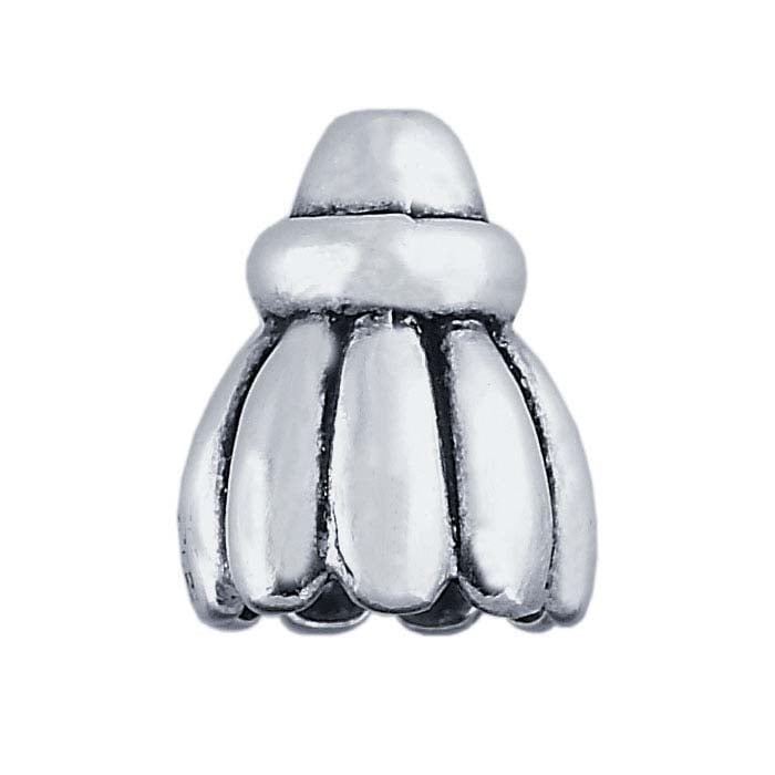 This sterling silver bead cone features a charming petal motif. Use it to gather multiple strands in your necklace or bracelet design into a single point, allowing you to finish your design with a single-strand clasp.