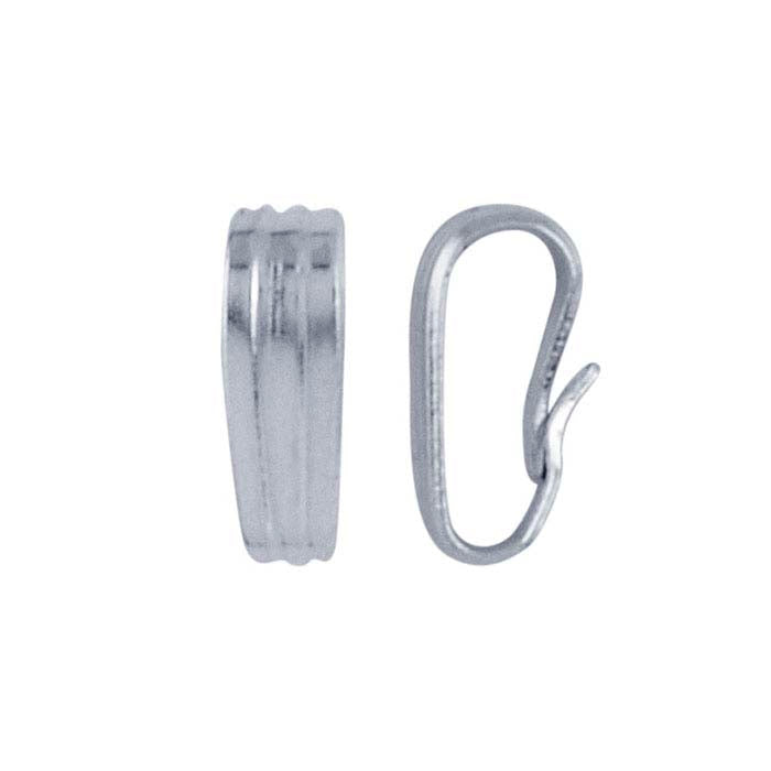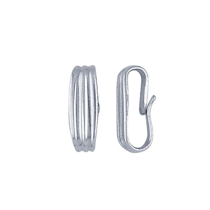 This easy-to-use sterling silver snap-on bail features a corrugated design that complements nearly any pendant style. Made from a strip of metal formed into an oval shape with overlapping ends, this bail is an ideal choice for lightweight necklace designs made with chain or cord. The metal temper gives the bail a springiness that allows it to slip over the ring on a pendant, charm or drop, yet maintain its shape to keep the pendant securely held.