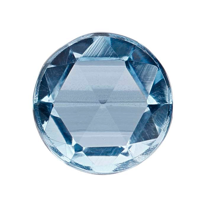 This round Swiss-blue topaz cabochon combines an even blue color with a versatile rose-cut, making it an ideal choice for vintage or modern jewelry designs. Combine it with a variety of complementary-color gemstones in a more complex pendant, ring or bracelet design. It pairs well with rose gold, yellow gold or white gold settings. One of the most popular topaz gemstones, Swiss-blue topaz is an electric, vivid blue said to rival the incredible hues of the sea—this gem presents a softer blue color. The gemstone is naturally flawless in most cases. Topaz is one of the birthstones for November.