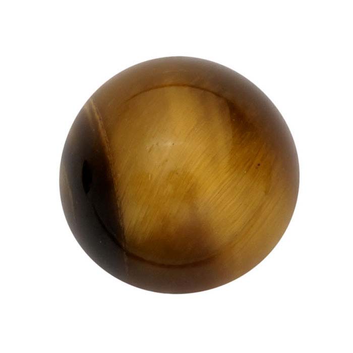This natural tiger’s eye round cabochon features its distinct signature glow with banded, golden-brown hues that catch and reflect lights. Combine it with complementary-color gemstones such as onyx or black spinel to create complex designs as well as matching sets.Tiger’s eye is a pseudomorph variety of macrocrystalline quartz. The gem begins as fibrous crocidolite, a gray/blue silicate mineral; quartz becomes embedded between the fibers, eventually replacing the crocidolite entirely. The colors displayed in tiger's eye result from the levels of iron oxide in the quartz; higher levels produce the golden brown hues characteristic of tiger's eye. Because the quartz maintains the fibrous structure of the crocidolite, the gemstone remains banded. When properly cut and polished, the chatoyancy becomes clearly visible. Revered and feared as a talisman, tiger's eye has been reputed to impart an "all-seeing eye" to those who wear it.