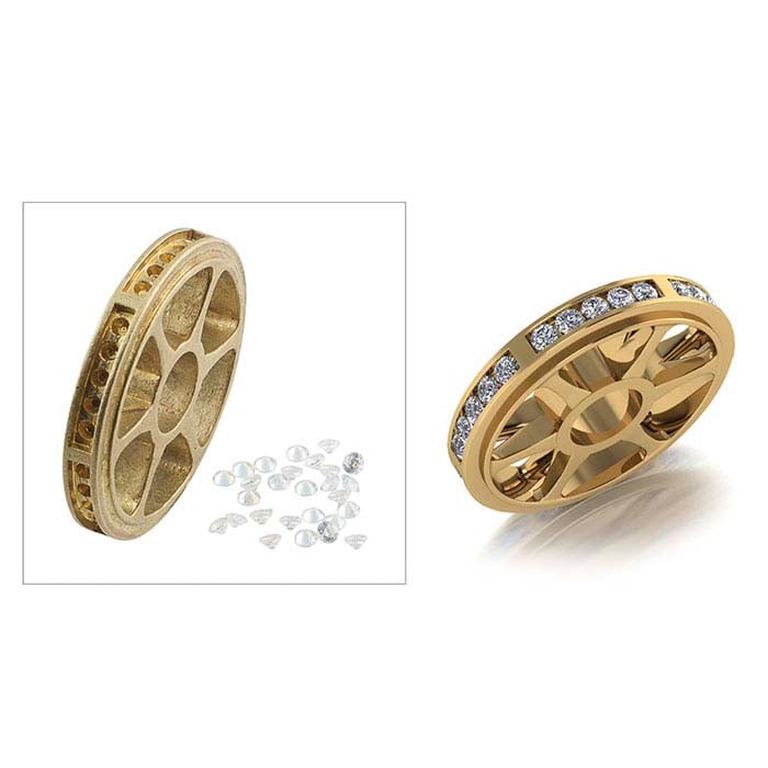 Created by Blaine Lewis, renowned jeweler and founder of New Approach School for Jewelers, the TrendSetter™ wheel is an innovation that allows you to practice setting stones without having to stop and set up an individual mounting for each stone. Using the wheel, you can set one stone after another by slightly adjusting the wheel in your clamp to bring the next setting on the wheel into position. This wheel, cast from a combination of brass and bronze, is designed for channel settings with 28 individual settings and includes 28 round 2.5mm CZ gemstones to use for practice. Widely recognized as the premier diamond-setting instructor in the U. S. today, and founder and director of New Approach School for Jewelers, Blaine Lewis has taught more than 5,000 stone-setting and metalsmithing students and continues to produce instructional videos and to serve as an active consultant to the jewelry industry.