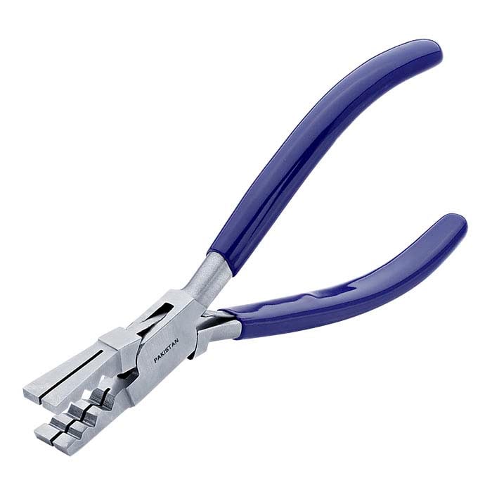 The jaws of these unique pliers are specially designed to hold tubing or small rods steady while being cut with a jeweler’s saw, ensuring a perfectly flush-cut end without collapsing the tube. Three corresponding notches in each jaw hold tubing ranging from 2 to 10mm OD. A 1mm slot along the length of the jaws fits a jeweler’s saw blade; set your blade in the slot and saw through the tubing held in the notches in a perfectly straight cut.