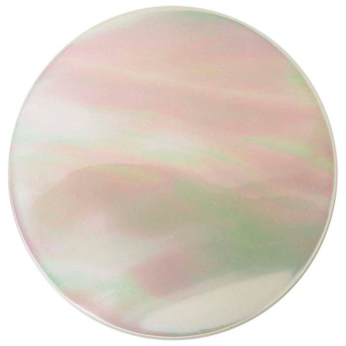This luminous mother-of-pearl round cabochon presentsa pearly, iridescent white color. Use it as the centerpiece of a pendant or brooch, or as the front of a decorative button. The cabochon is an ideal match for any metal color; yellow contrasts the pearlescent white for bold, striking designs while white complements the iridescence of the gemstone, creating a softer, more delicate look.Named for its resemblance to the finish and color of pearls, mother-of-pearl cabochons are made from the hard, iridescent material that forms on the inside of some shells and shellfish. It is used for inlay and to create beads, cameos, cabochons, buttons and other ornamental objects.