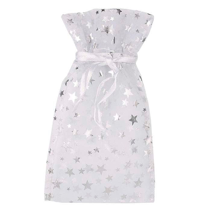 White Organza and Silver Star 76.2mm x 139.7mm Pouch