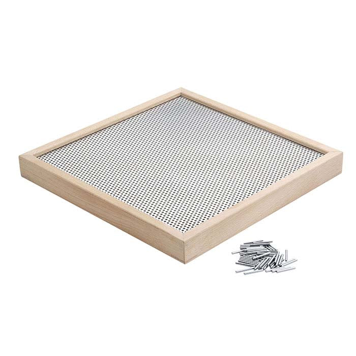 Concebido por The Wire Wizard™, Corrine Gurry, o Really Big Jig™ da Artistic Wire® é uma superfície de trabalho extra espaçosa que oferece o espaço necessário para criar grandes designs em fio. A sua superfície de trabalho quadrada de alumínio leve de 11-1/4" está perfurada com furos espaçados uniformemente que acomodam pinos em qualquer configuração que o seu design possa requerer. Este jig é ideal para criar designs maiores, como colares estilo babete ou com formas intrincadas, bem como peças de arte como móbiles e placas decorativas. O jig inclui 50 pinos, 25mmL x 3mm de diâmetro