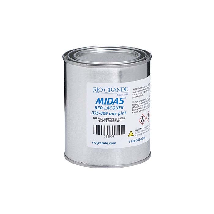 This easy-to-use plating resist is specially designed for use with acid plating baths. The high-visibility red lacquer highlights masked areas. Lacquer can be either brushed or sprayed on, or the piece can be dipped into the lacquer. Do not apply lacquer to soft or porous stones.