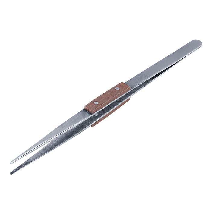 Estas pinças em aço inoxidável são uma excelente ferramenta para soldadura e uso geral, adequada para uso diário. As pontas direitas facilitam o acesso ao seu trabalho de forma eficaz, o comprimento de 8" permite alcançar áreas apertadas, e as pegas em fibra resistente ao calor protegem as suas mãos durante a soldadura. Uma superfície serrilhada no interior das pontas segura a peça com mais firmeza. O aço inoxidável proporciona uma vida útil razoável à ferramenta e bom valor; não contamina as operações de soldadura e é um excelente dissipador de calor.