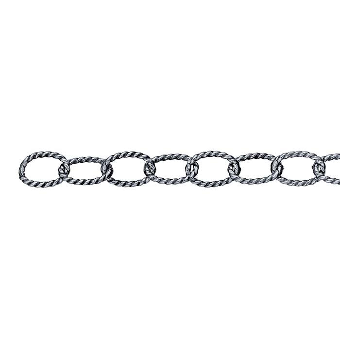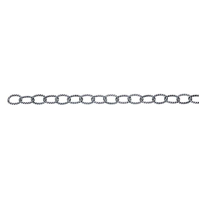 Pattern links on this sterling silver oval cable chain add modern twist to a classic profile. The chain is oxidized to enhance the texture of each link. Offer this chain as is, or use it as a foundation for your custom designs.The most common chain style, cable chains are formed by simply connecting single links perpendicularly end to end. Links may be round, oval or other shapes.This chain is sold by the foot, so it's easy to buy as much or as little length as you need.