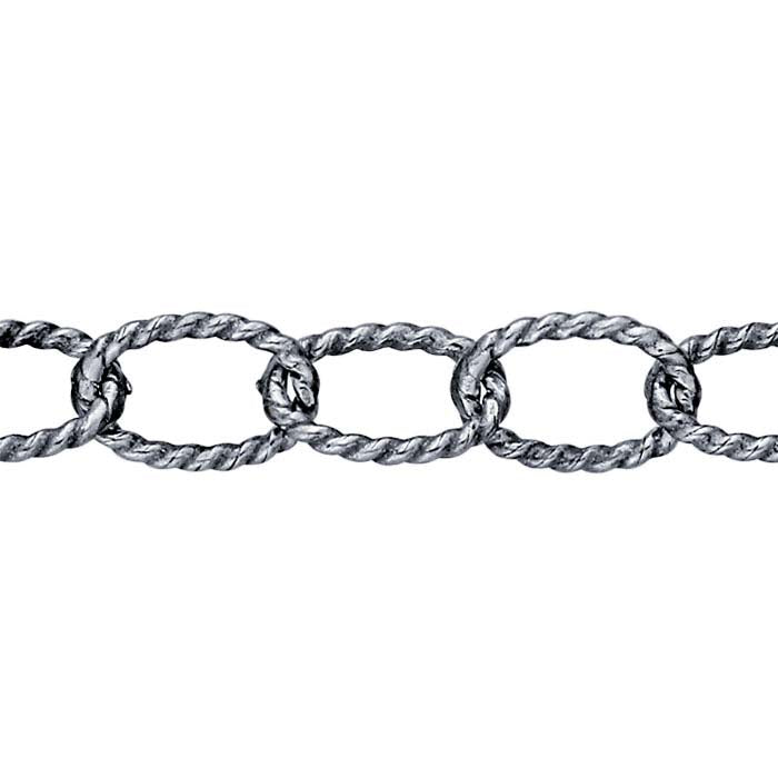 Sterling Silver Oxidized 4.6mm Pattern Oval Cable Chain, By the Foot