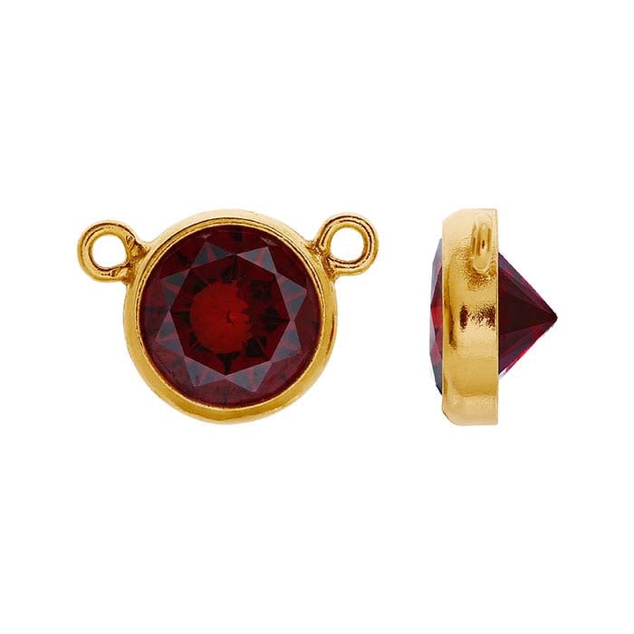 Este pendente festão em ouro amarelo preenchido 14/20 está engastado com uma zircónia cúbica facetada redonda de 6mm em tom vermelho-escuro, oferecendo uma alternativa económica ao granada, a pedra de nascimento de janeiro. Apresenta dois anéis fixos de fixação que facilitam a suspensão do pendente entre dois comprimentos de corrente para criar um colar ou tornozeleira simples; alternativamente, use argolas para ligar vários pendentes juntos para designs mais complexos.