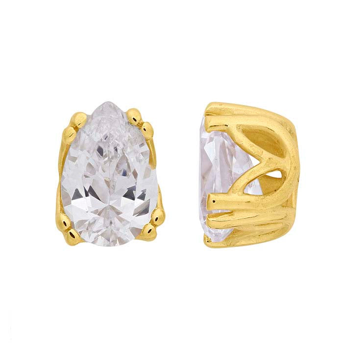 Ouro Amarelo 14K 6 x 4mm Pera Pré-Entalhado Duplo Garra Configuração de 4 Garras