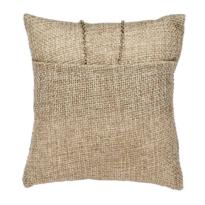 Esta almofada de exibição em juta natural proporciona uma sensação orgânica que complementa uma variedade de estilos de joalharia. A almofada suporta um relógio ou uma pulseira de punho (ou talvez uma ou mais pulseiras rígidas). Coloque a almofada plana ou encaixe-a numa caixa ou tabuleiro. A almofada possui um bolso traseiro para guardar o excesso de corrente, mantendo-o arrumado e fora do caminho.