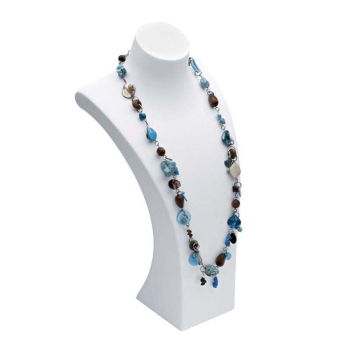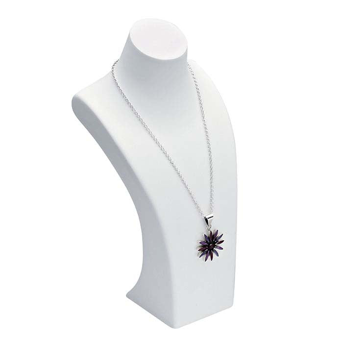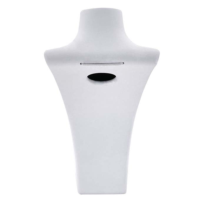 Este pequeno busto de colar em plástico apresenta um design fino ideal para exibir um único colar ou pendente. O acabamento branco mate liso complementa qualquer estilo de design, e a curva do busto mostra a queda natural da joia para que os clientes possam ver como ficará quando usada. Uma fita elástica na parte de trás do expositor permite ajustar o colar ao comprimento perfeito para exibição, e um recorte oval esconde o excesso de corrente para garantir uma apresentação limpa e profissional.