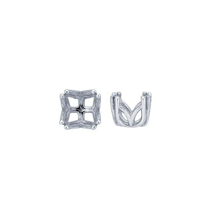 This sterling silver setting has an attractive open design and holds one 6mm round faceted gemstone. Pre-notched prongs provide a professional start to stone-setting with perfectly level stone seats already cut into each prong. A variation on a classic 4-prong setting, which supports the gemstone on four sides, this setting has four double prongs that create eight contact points for added security.