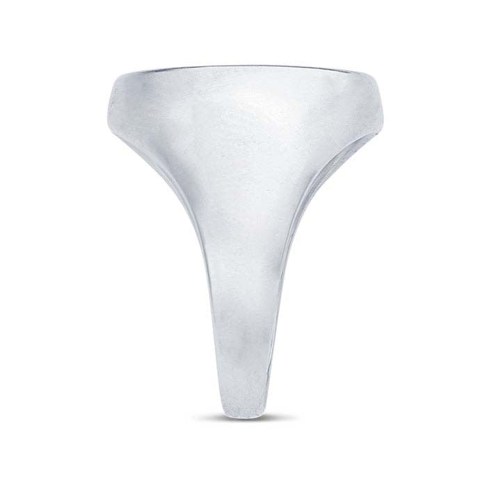 This sterling silver ring mounting features a bezel mounting that holds one 16 x 12mm oval cabochon, cameo, or buff-top stone. The shank is tapered, making it comfortable to wear. Use jeweler's epoxy to secure the cabochon in the mounting.